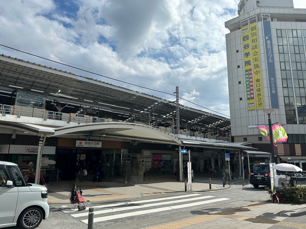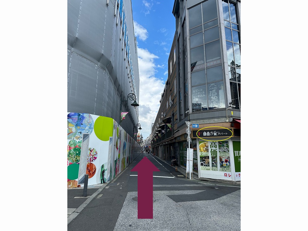 2「自由が丘デパート」を右手に、工事中ビルを左手に進んでください。