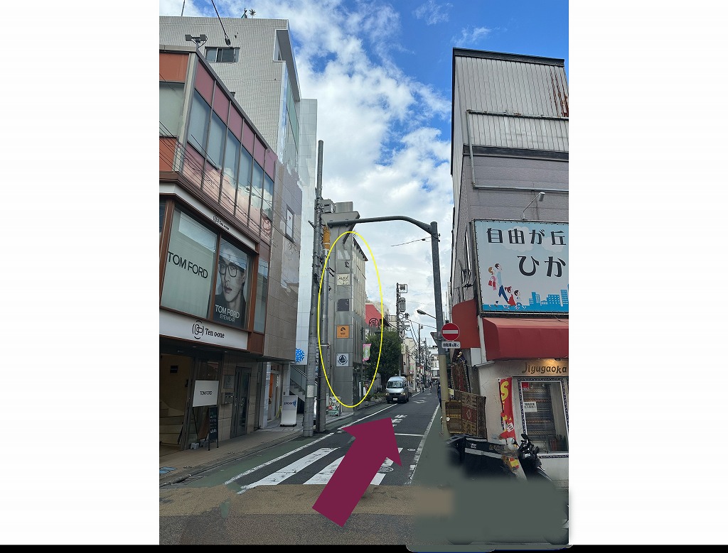 2「自由が丘デパート」を右手に、工事中ビルを左手に進んでください。